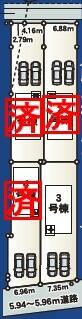 号棟番号:3号棟 川流域) 建物面積に別途ルーフバルコニー約9.72平米有り 駐車場2台(車種による) |