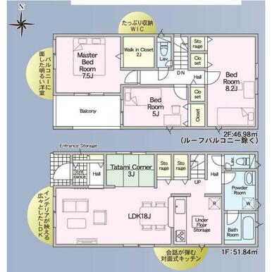 号棟番号:2号棟 事項】容積率:前面道路幅員制限 特定都市河川流域 建物面積に別途ルーフバルコニー約6.48平米有り 土地面積:自主後退部分約8.3平米および協定地約0.98平米含む |