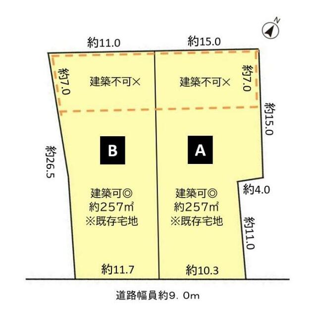 | 接道状況 | 東9.0m 公道 接面11.7m | 地目 | 宅地 |