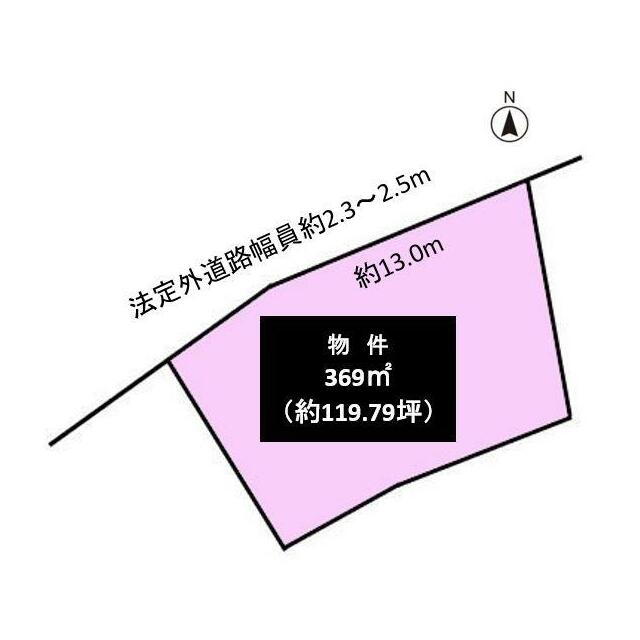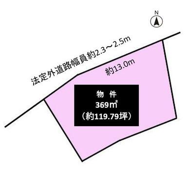 | 接道状況 | 北西2.3m 公道 接面13.0m 南東6.0m 公道 接面21.0m | 地目 | 原野 |